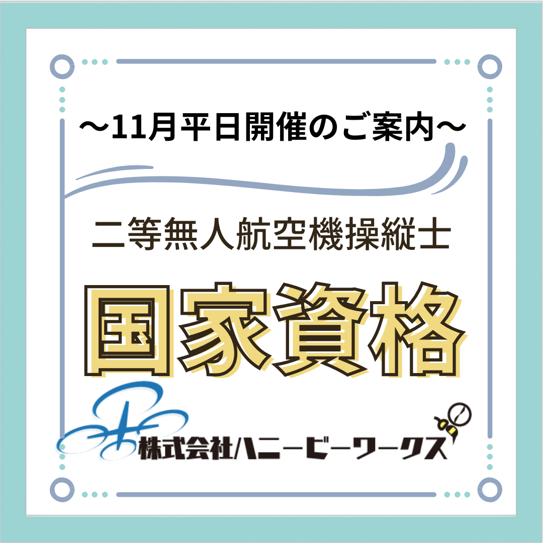 11月後半平日開催【広島ドローンスクール】 今日は11月11日ポッキーの日ですね♪ ポッキー食べましたか。 本日のおやつはポッキーで決まりですね! さて、11月二等無人操縦士初学者コースのお知らせです! 11月25日~28日開催します。 実績NO.1のベテラン講師が 少人数制で寄り添いしっかりとサポートさせていただきます‼ 限定解除も同時受講していただけます。...